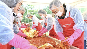 LS그룹이 경기 안성시와 '온기나눔 김장가득' 행사를 진행했다고 17일 밝혔다.행사는 지난 15일 경기 안성 LS미래원에서 진행됐으며 명노현 LS 부회장, 안원형 사장 등을 포함한 LS그룹 임직원 30여 명과 김보라 경기 안성시장, 윤종군 국회의원, 안정열 시의회의장 등을 비롯한 자원봉사자 350여 명이 참여했다.행사에서는 11톤의 김장을 담갔으며 LS미래원에서 직접 수확한 토종벌꿀 100병과 이불 100채도 함께 준비해 봉사자들과 안성시 사회복지시설 20여 곳과 소외계층 900여 가구에 전달했다.명노현 LS 부회장은 "2016년부
