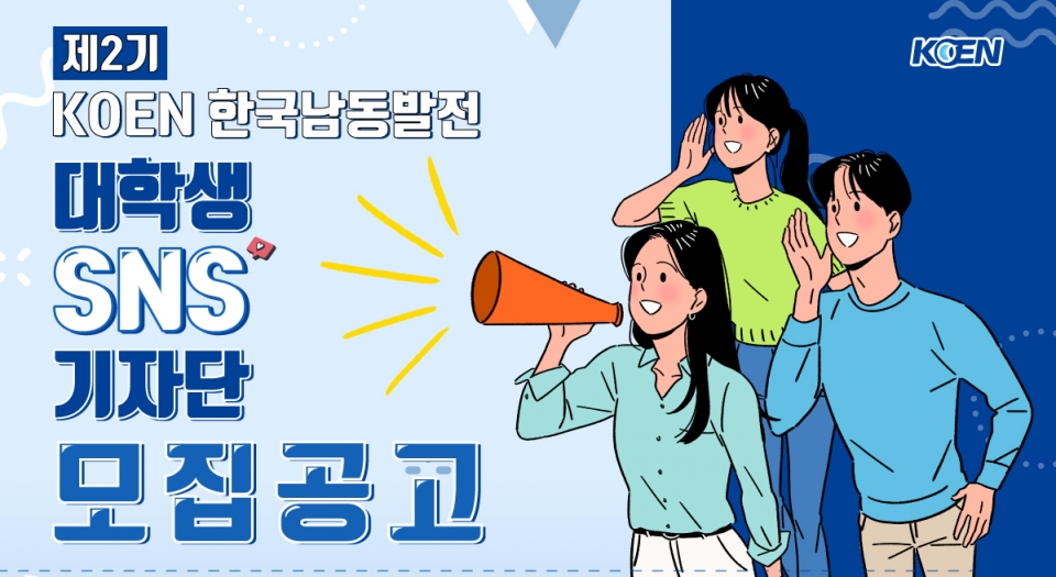 한국남동발전은 오는 18일까지 전국 대학생을 대상으로 제2기 KOEN 대학생 SNS 기자단을 모집한다고 8일 밝혔다.