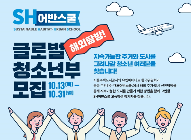 이달 말까지 해외탐방 참여자를 모집하는 'SH어반스쿨'은 다음달 4일 15명의 서울시 고등학생을 선발해 다음달 19일 발대식을 진행할 예정이다.