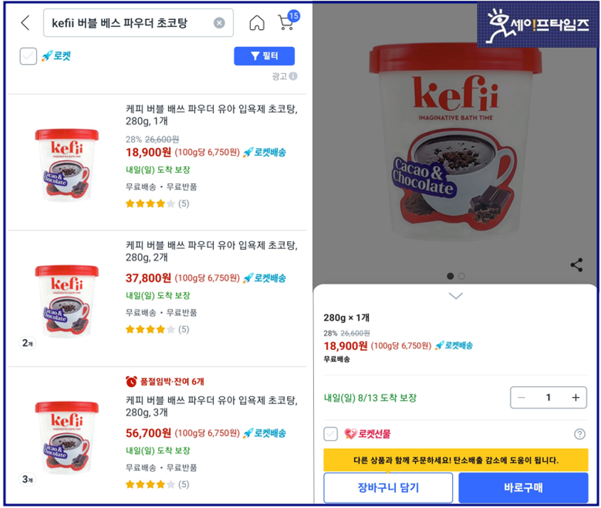 쿠팡은 정가 2만6600원에 28% 할인된 1만8900원에 판매하고 있었다. 세이프타임즈가 해당 제품을 주문했더니 13일 오후 정상적으로 배달됐다.