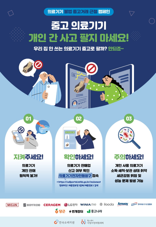 주요 의료가전 기업과 3대 중고거래 플랫폼(당근마켓·번개장터·중고나라)은 소비자 인식 제고를 위해 이번달 중순까지 중고 의료기기 판매 근절 캠페인까지 벌였지만 의료기기 불법 거래는 아직 성행하고 있다.