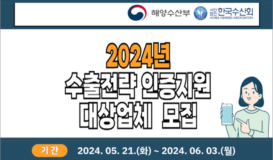 해양수산부는 '2024 수출전략 인증 지원사업' 대상자를 모집한다고 21일 밝혔다.