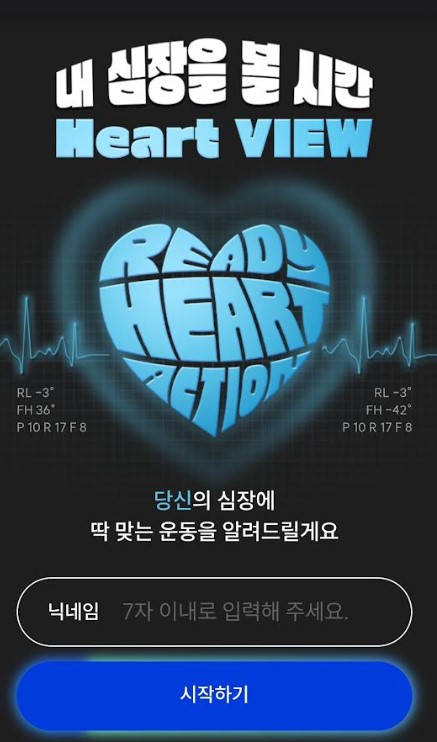 하트뷰 캠페인은 웹페이지를 통해 누구나 경험할 수 있다. 하트뷰 웹페이지에 접속한 후 채팅 형태로 나오는 질문에 답하고 평소 심박수, 연령, 원하는 운동 강도를 입력하면 된다.