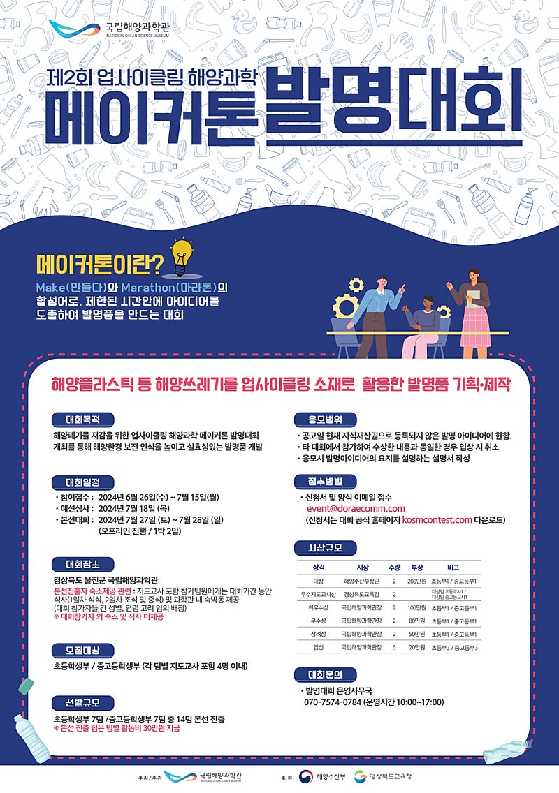 해양수산부와 국립해양과학관이 제2회 업사이클링 해양과학 메이커톤 발명대회를 개최한다고 26일 밝혔다.