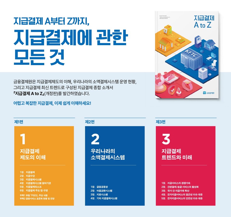 금융결제원이 지급결제 분야 종합 소개서 지급결제 A to Z 개정판을 발간했다고 17일 밝혔다.