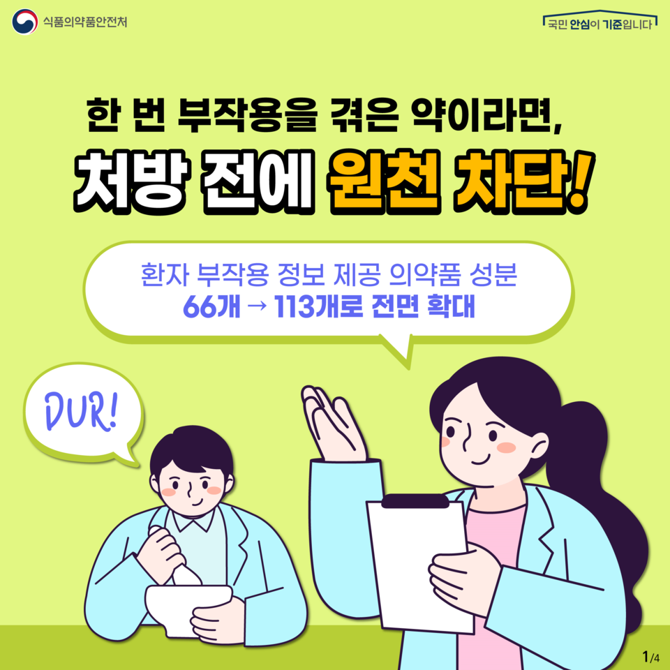 식약처와 한국의약품안전관리원, 건강보험심사평가원은 의약품 안전사용 서비스(DUR) 시스템 내 환자별 부작용 데이터베이스(DB)를 구축하고 의료진에게 알림창으로 피해구제를 받은 이력이 있는 환자의 부작용 정보를 제공해왔다.
