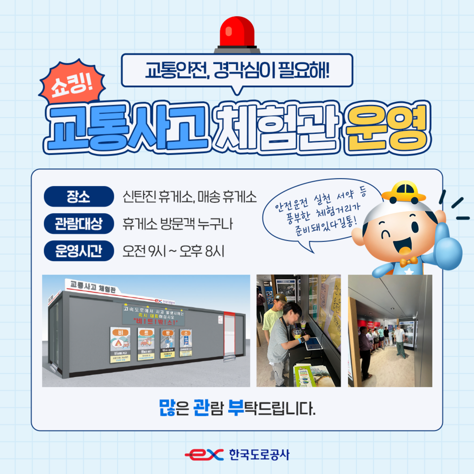체험관 출구는 안전운전 실천 서약을 할 수 있는 장소가 마련됐으며 체험관 외벽은 졸음운전과 2차 사고 예방을 위한 문구로 꾸며졌다.