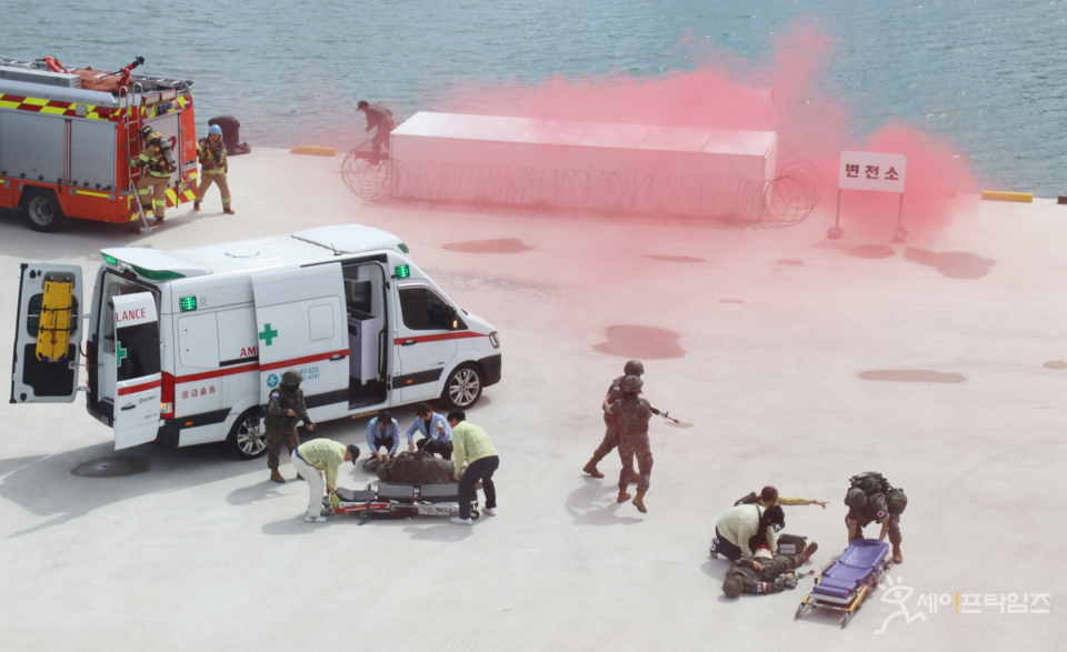 이날 훈련에는 해양수산부 장관·한국해양대 총장·부산 중구청장·육군 53사단장 등이 참석하고 부산항의 30여개 유관기관에서 300여명 인원과 장비 100여대가 투입됐다.