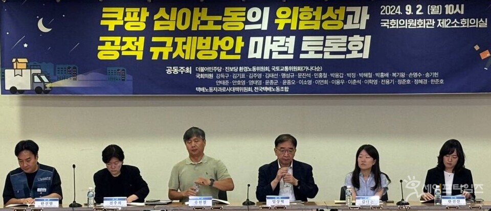 쿠팡 새벽배송 노동자 사망 사고가 잇따라 발생하면서 2일 국회에서 심야 노동의 위험성과 공적 규제방안 마련을 위한 토론회가 개최됐다.