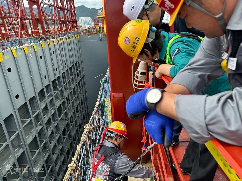 노동자 추락사고 이후 고용노동부 통영지청은 작업 중지를 명령했지만 대상은 현장이 아닌 동일 작업인 라싱브릿지 설치에 국한됐다.