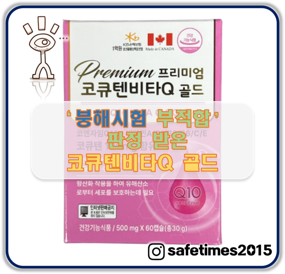 식품의약품안전처에 따르면 건강기능식품 '프리미엄 코큐텐비타Q 골드'는 붕해시험 부적합 판정을 받아 회수·판매 중단 조치에 들어갔습니다.