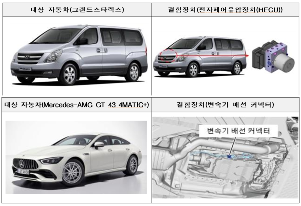 벤츠의 Mercedes-AMG GT 43 4MATIC+ 등 5개 차종 5706대는 변속기 배선 커넥터 설계 오류로 화재 가능성, GLE 300d 4MATIC 등 5개 차종 4748대는 차량 너비가 안전기준을 초과해 23일부터 시정조치를 진행 중이다.