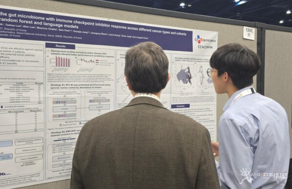 CJ바이오사이언스는 비소세포폐암·흑색종·신세포암 환자 942명의 데이터와 1만3400명의 장내 미생물 유전체 데이터를 통해 AI 모델 학습을 진행했다.
