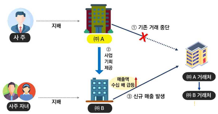 서비스 업체 B사는 사주 자녀가 대주주인 법인에 주요 거래처 여러 개를 떼줬다.