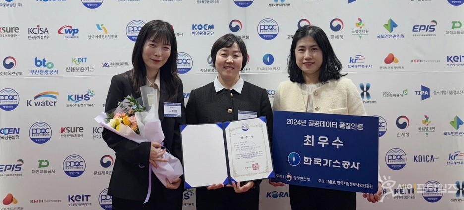가스공사는 2024년 공공데이터 품질인증의 전체 평가지표에서 만점을 받아 공공기관 중 유일하게 3년 연속 최우수 등급을 획득했다.
