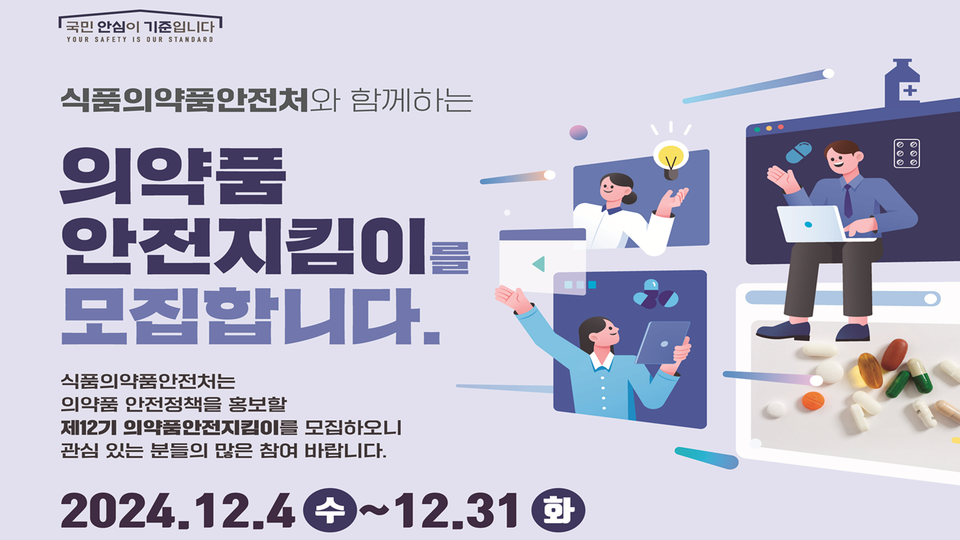 식품의약품안전처는 제12기 의약품안전지킴이를 모집한다고 10일 밝혔다.
