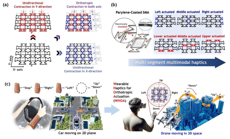 KAIST는 기계공학과 오일권 교수 연구팀은 형상기억합금 와이어를 이용한 '직교 방향 제어 웨어러블 햅틱(WHOA)' 기술을 개발했다고 21일 밝혔다.