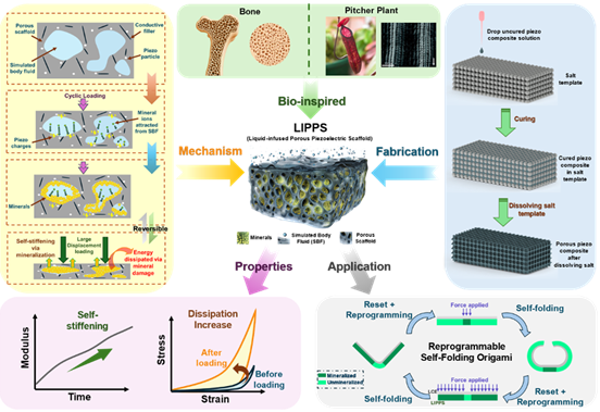 연구팀은 힘을 많이 가할수록 더 많은 전하를 생성하는 다공성 압전 바탕재를 만든 후 그 안에 피와 유사한 미네랄 성분을 갖는 전해질을 넣은 복합재료를 합성했다.