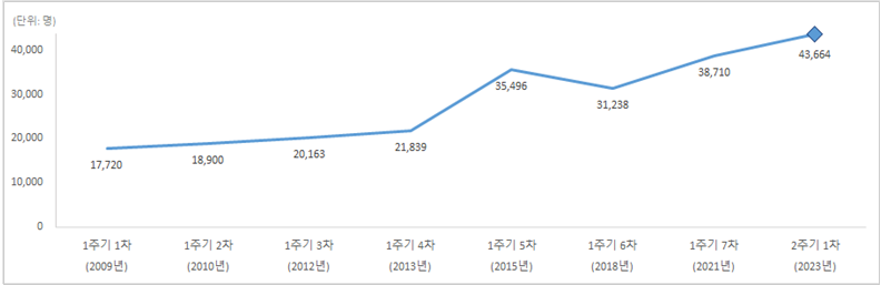 의사·간호사 등의 1인당 1일 평균 투석은 각각 25.4·4.9건으로 직전 차수보다 감소했다.