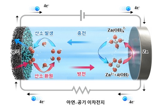 연구팀은 개발된 이종기능 촉매를 활용한 아연·공기 완전셀을 구성해 고성능 에너지 저장 소자를 구현했다. 구현된 전지는 기존 상용화된 리튬이온 배터리를 뛰어넘는 에너지 밀도를 가졌다.