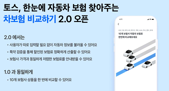 금융당국은 오는 20일부터 혁신금융서비스 부가조건 준수여부 등을 확인받은 네이버페이·토스에서 자동차보험 비교·추천서비스 2.0을 출시한다고 19일 밝혔다.