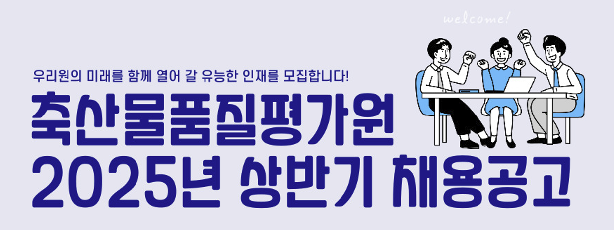 축산물품질평가원이 올해 상반기 '신규직원' 26명을 공개 채용한다고 20일 밝혔다.