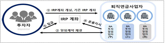 기존에는 IRP 가입자가 직접 적립금 운용을 지시했지만 해당 서비스를 이용하면 투자 일임업자의 로보어드바이저가 대신 운용을 지시하게 된다.