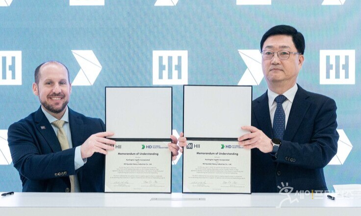 HD현대는 7일(현지시간) 미국 헌팅턴 잉걸스와 선박 생산성 향상·첨단 조선기술 협력을 위한 양해각서(MOU)를 체결했다고 8일 밝혔다.