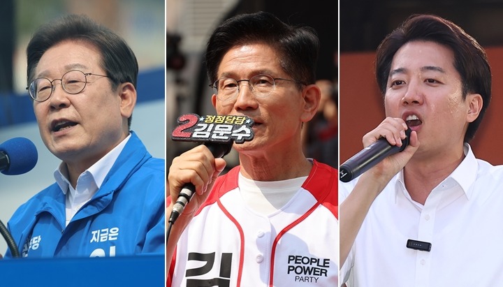 JTBC는 △이재명 후보 50.6% △김문수 후보 39.4% △이준석 후보 7.9% 등으로 집계됐다.