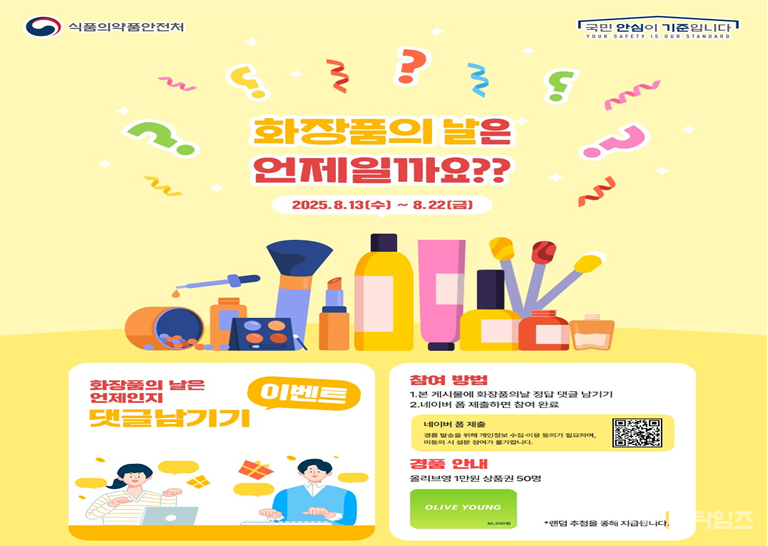 식약처는 추첨을 통해 참가자에게 선물을 제공하며, 오는 25일부터는 '화장품의 날 응원 이벤트'도 진행할 예정이다.