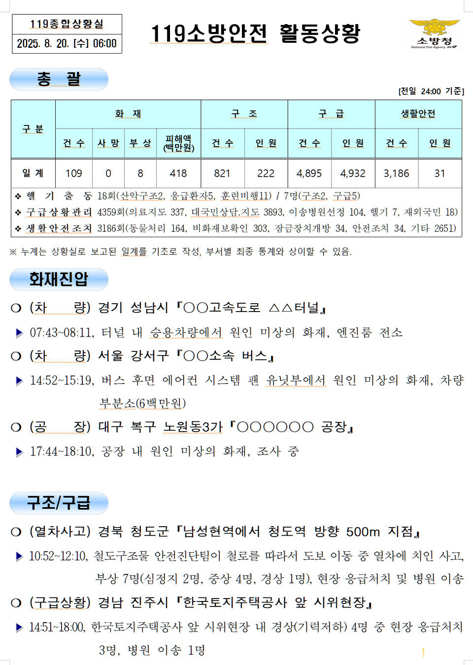 소방당국은 소방차 41대와 인력 108명을 투입해 진화에 나섰다. 불은 화재 1시간 뒤인 오후 6시 42분쯤 완전히 진압됐다.