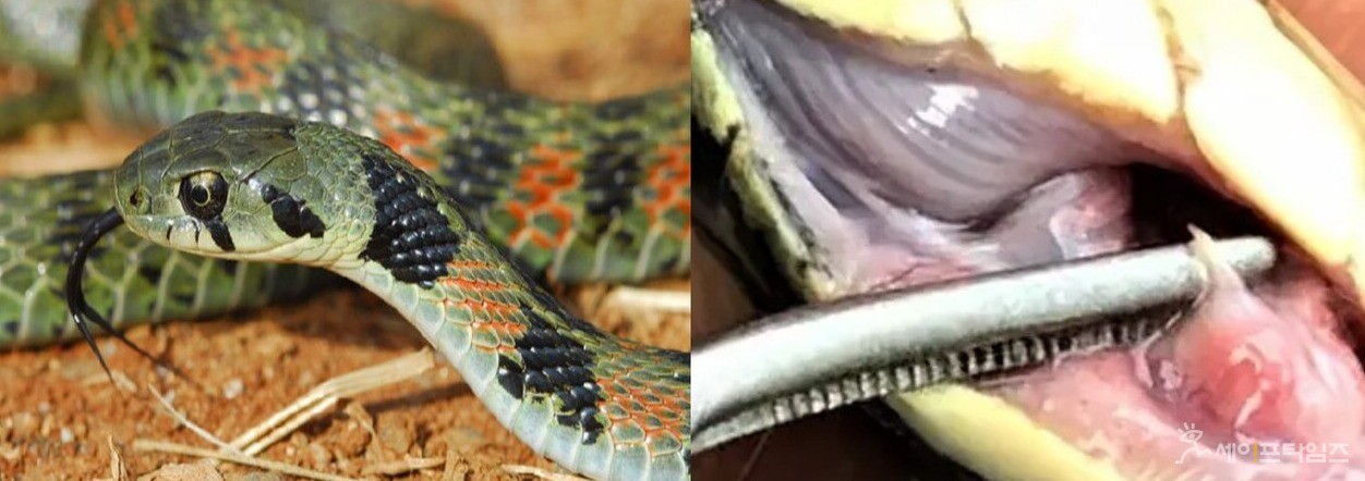 흔히 '꽃뱀'으로 알려진 유혈목이는 한국에서 가장 흔하게 볼 수 있는 뱀으로 무독사로 알려졌었다.
