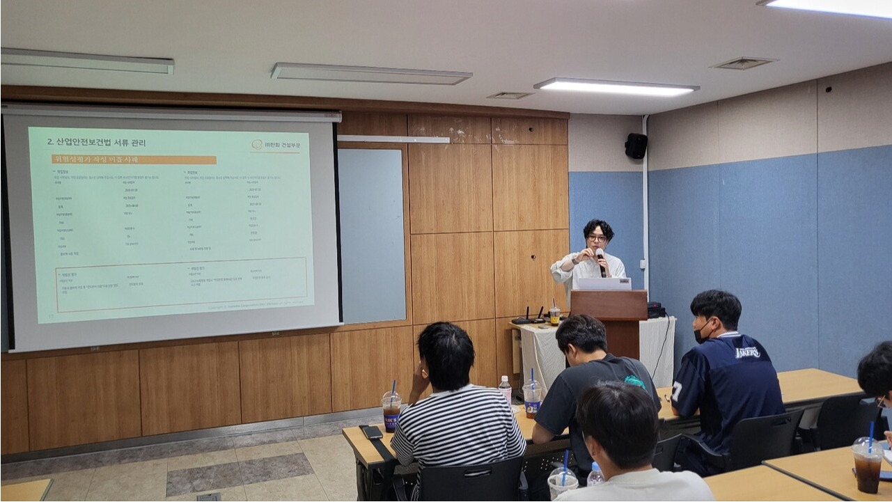 19일 진행된 교육은 △안전보건 법정교육 이해 △법적 서류 작성·관리 △안전관리 심화교육 △보건관리 심화교육으로 구성됐다.