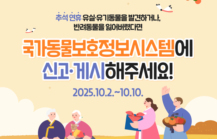 또 긴 연휴로 인한 불편을 덜기 위해 추석 기간 운영하는 동물병원 현황을 홈페이지와 국가동물보호정보시스템을 통해 안내한다.