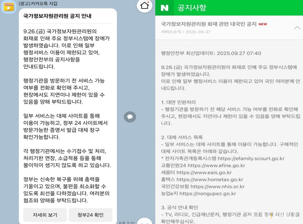 정부가 자체 전산망이 아닌 민간기업 플랫폼으로 대국민 공지를 하는 이례적인 상황이 발생한 것이다.