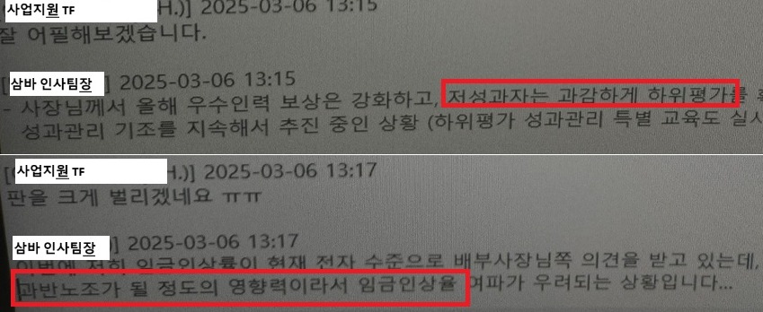 노조에 따르면 사업지원TF는 경쟁사 대비를 이유로 리텐션보너스를 특정 인원에게만 부여하도록 요구했으며 직원들에게 하위고가를 더 부여해 인건비를 절감하도록 지시했다.