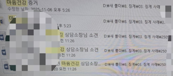 노조는 또 직원들이 마음병가센터를 다녀온 기록을 징계 폴더 안에 보관한 점을 지적하며 "정신건강을 위한 제도가 사실상 병가사용 평가나 인사 조치와 연결하는 구조"라고 비판했다.