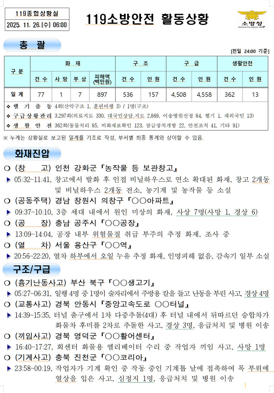 다른 주민 16명은 스스로 대피하거나 구조됐다.