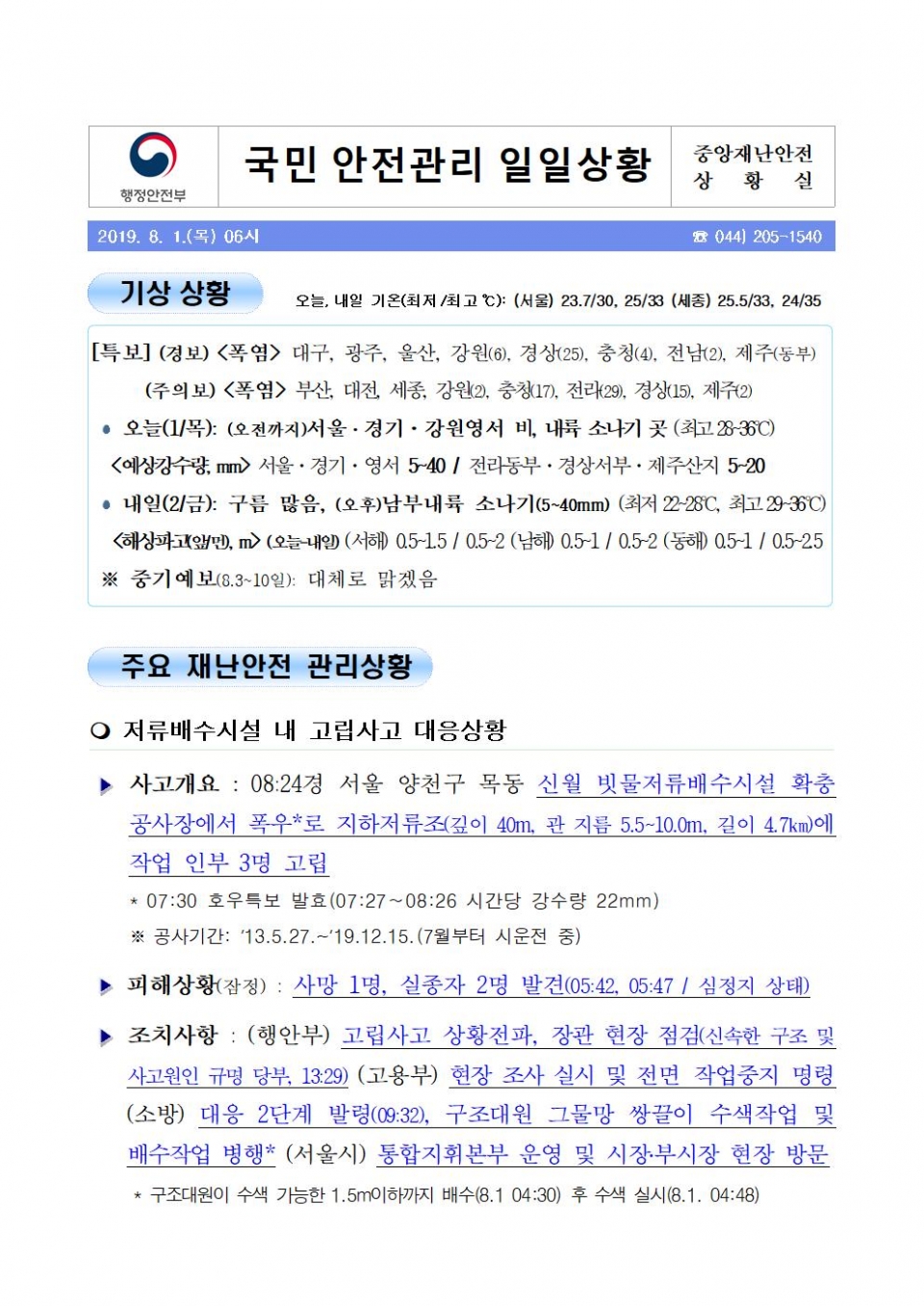 - [7월 29일 안전상황실] 서울 수도권 호우주의보 … 북한산·청계천 통제
