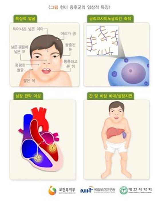 헌터증후군은 효소 결핍으로 골격이상, 지능저하 등이 발생하는 선천성 희귀질환이다.